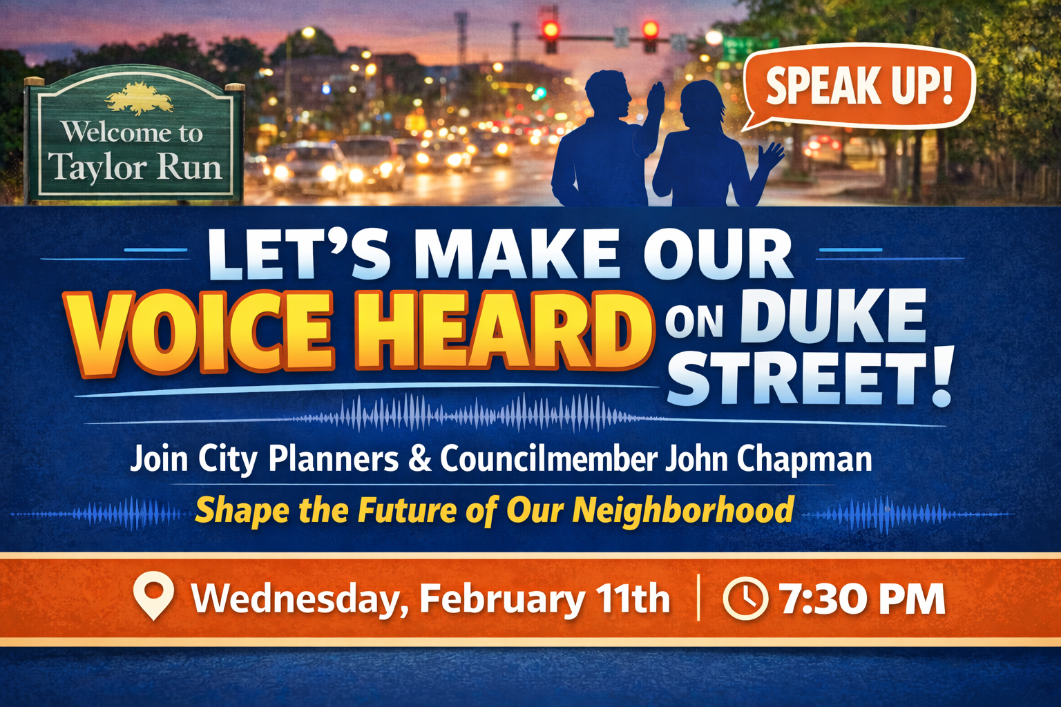 The Taylor Run Citizens Association needs your support as we kick off the 2026/2027 season! Join our Board to get involved on a deeper level, helping to shape and implement our plans for 2026. If you're interested, please fill out the form by February 28, 2026. Board members will be elected during our March meeting.